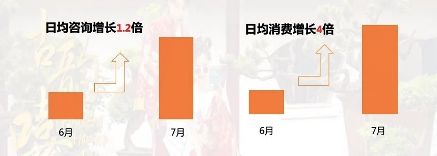 在6月到7月一个月的投放周期内,该投放客户日咨询增长1.2倍,日均消费增长4倍。