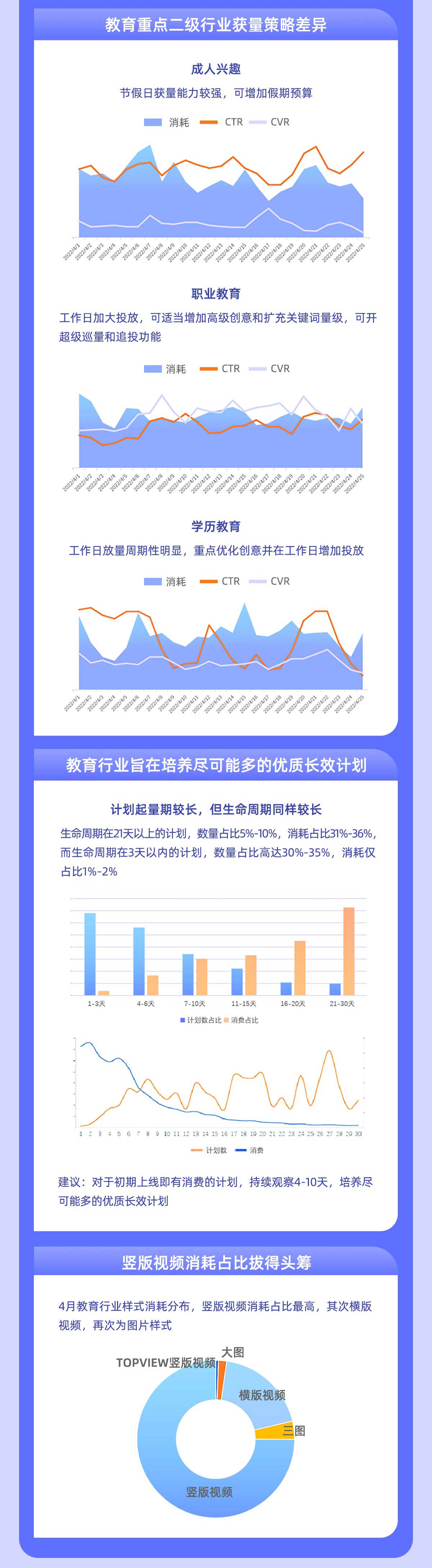 浏览:222 次 我们为大家带来教育行业的营销洞察白皮书(5月版),基于近期教育行业的投放情况,智能营销平台的营销顾问为教育行业总结最新鲜、起效的优化打法。同时,也就教育行业最近火爆的垂直细分赛道,如短视频运营课程、收纳课程、国画国学课程、理财课程等提供了更加细化的优化投放建议!