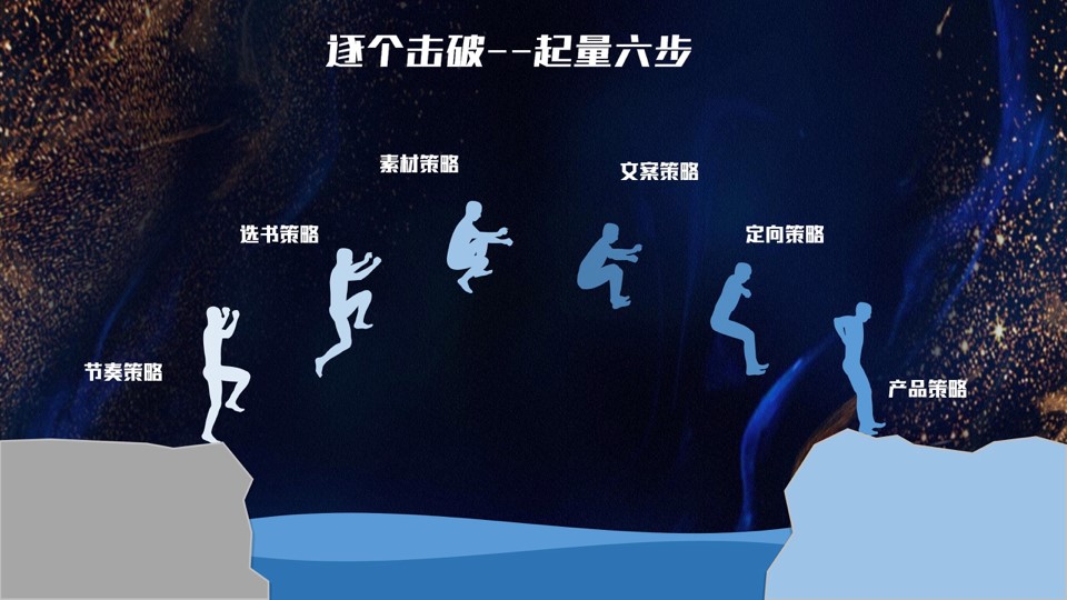 “卡”——每日卡点开启过审计划,每周四、五重点储备新计划;“增”——持续新增账户,新增计划;“量”——在此基础上,每日账户新建计划数100+,创意数量300+,上新书籍量10+,产出素材量30+;“储”——大量储备图片素材、文案库、 视频素材、落地页。在充分储备,做好计划的基础上,实现后续策略的制定,实现营销起量。